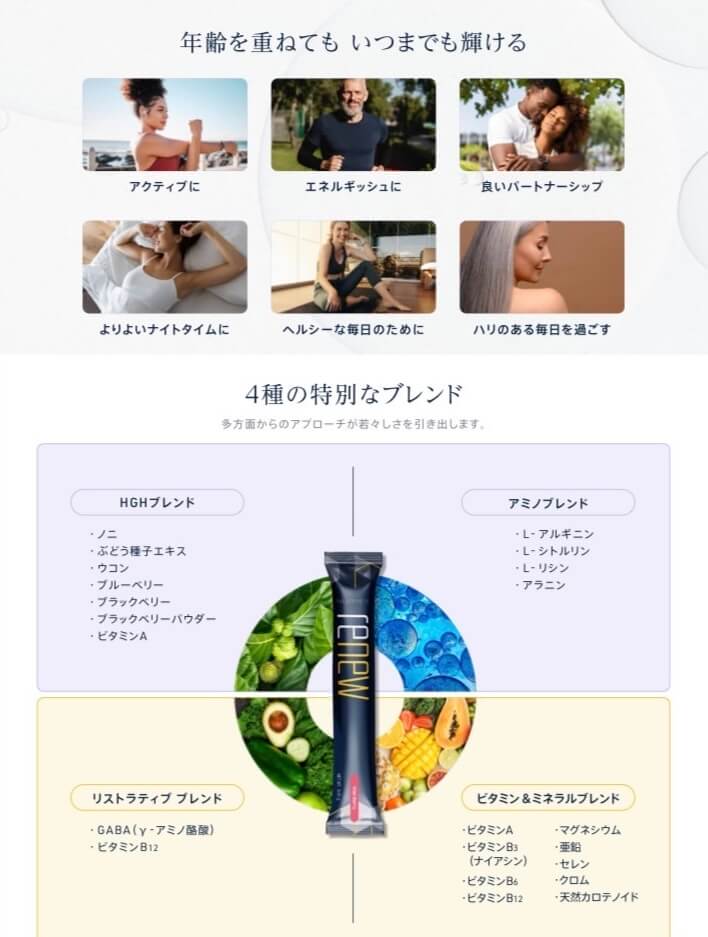 アセロラ濃縮果実粉末、フラクトオリゴ糖シロップ、バジルエキス、レモンバームエキス、冬虫夏草菌糸体エキス末、モリンダシトリフォリア(ノニ)濃縮果汁、グリセリン、L-テアニン、香料:香料、L-グルタミン、DL-リンゴ酸、乳酸、甘味料(ステビアエキス)